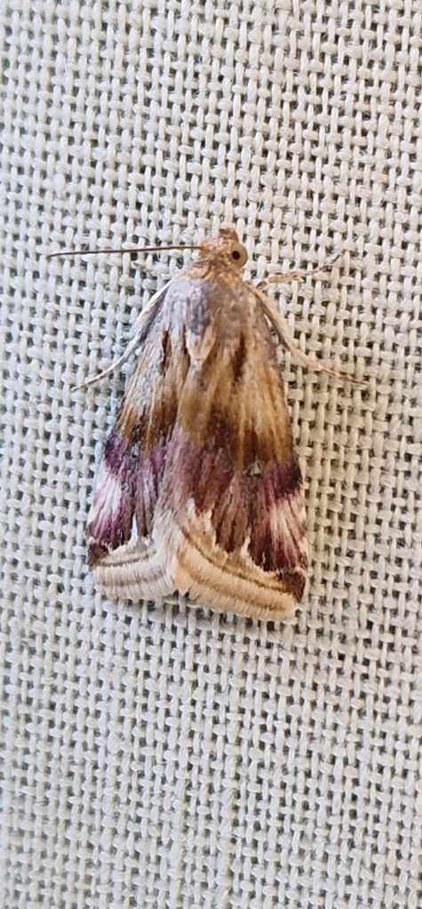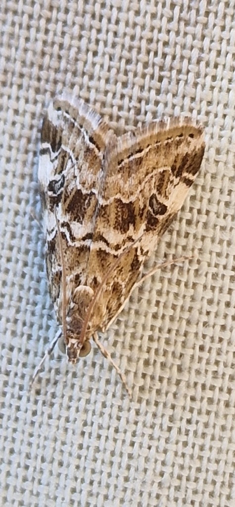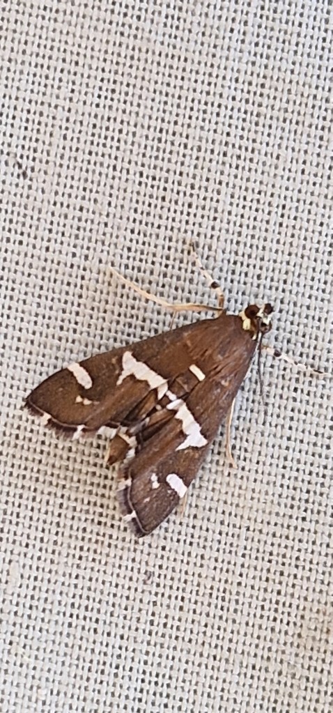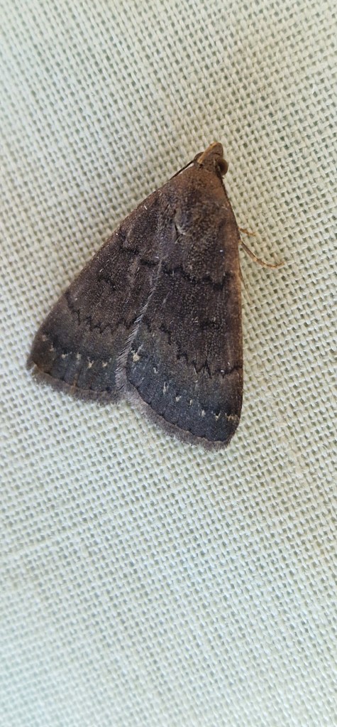 Udea numeralis.A tricky little moth to catch as very flighty in and amongst the egg boxes so often escapes.Today fortunately caught 2 of them