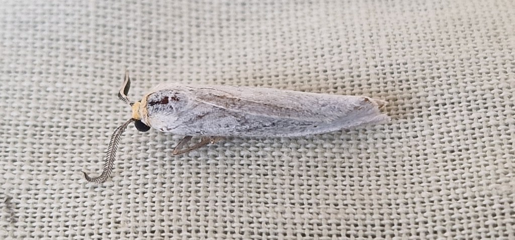 A rather washed out Nodaria nodosalis.This is a male,look closely at the swollen parts of the antennae close to the head,females have evenly thin antennae.