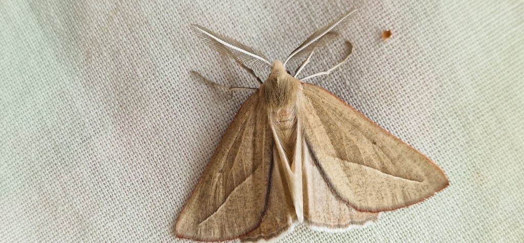 A male Coscinia chrysocephala,with incredible antennae,distinguished from the very similar moth that I catch here,Coscinia cribraria by its yellow head area.